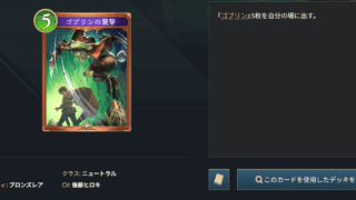 コスト5 【シャドバビヨンド】ゴブリンの襲撃 ゴブリンの襲撃クラス: ニュートラルタイプ: -レアリティ: ブロンズレア🎨 イラストレーター: 🎙 CV: 後藤ヒロキ📦 収録パック: 第一弾カードパック「伝説の幕開け」コスト5スペルカード能力詳細『ゴブリン』5枚を自分の場に出す。考察📝... 2025.06.16 2025.07.17 コスト5スペルトークン展開ニュートラルブロンズ後藤ヒロキ第一弾カードパック「伝説の幕開け」