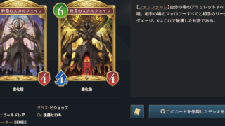SEMSEI 【シャドバビヨンド】終焉のスカルフェイン このページはシャドウバースワールズビヨンド非公式wikiの「終焉のスカルフェイン」のページです。能力詳細から考察まで詳しく攻略情報を解説しています。終焉のスカルフェインクラス: ビショップタイプ: -レアリティ: ゴールドレア🎨 イラストレ... 2025.06.17 2025.07.15 SEMSEIアミュレット破壊コスト6ゴールドビショップファンファーレフォロワーリーダーにダメージ体力4全体ダメージ後藤ヒロキ攻撃力4第一弾カードパック「伝説の幕開け」