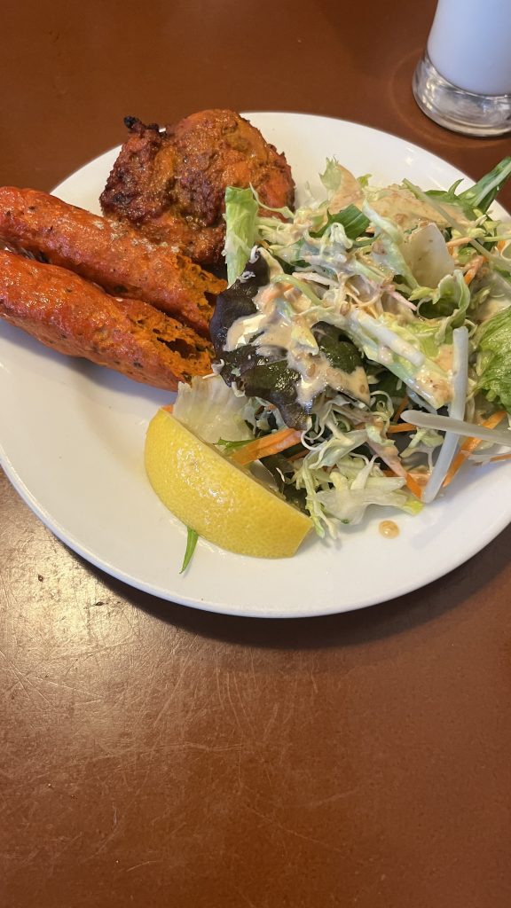 次に 前菜として、タンドリーチキン&シークカバブとサラダ が登場。